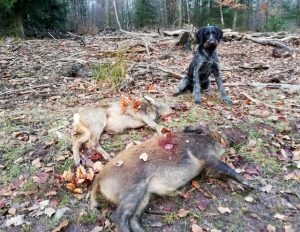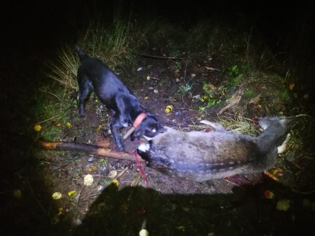 Cleo vom Hochwald, Nachsuche auf Damspießer mit anschließender Hetz und halten